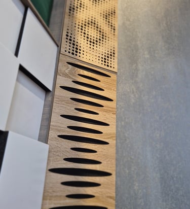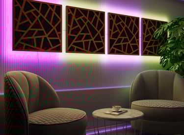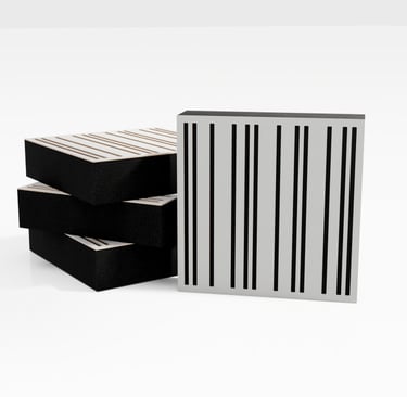 ABSORBERIAI - pagrindinis garsą sugeriančių panelių tikslas – sumažinti aidą, reverberaciją ir nepageidaujamą triukšmą, sukuriant akustiškai malonesnę ir kontroliuojamą aplinką;