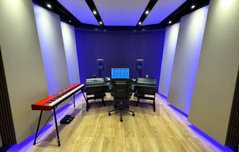 A music production studio in a private house meets the highest criteria for soundproofing and indoor acoustics.